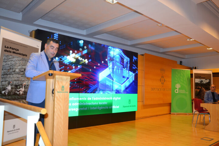 El vicepresident de la Diputació de Lleida, Agustí Jiménez, acompanyat del director de l’àrea de Noves Tecnologies, Ivan Bertran, ha participat aquest dijous en la jornada sobre els desafiaments de l’administració digital a les …
