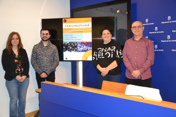 La vicepresidenta de l’IEI, Estefania Rufach, i el director del Cor de Cambra de l’Auditori, Marcel Ortega, acompanyats dels membres de la junta del Cor, Adrià Pinyol i Marta Andrés, han presentat aquest dijous …