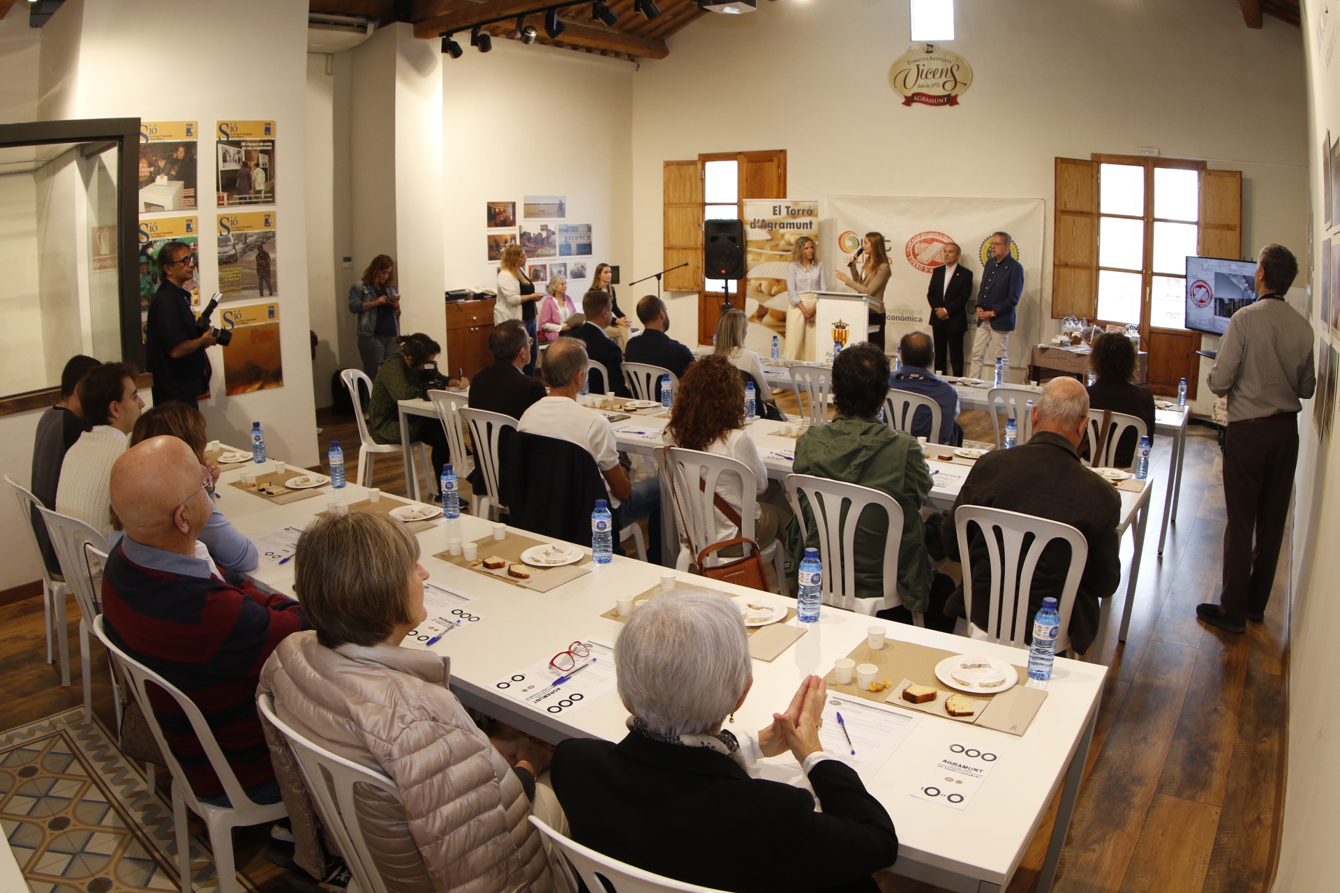 Posteriorment, s’ha efectuat una simulació d’una sessió d’entrenament d’anàlisi d’atributs sensorials i de tast del Torró d’Agramunt per part de tots els assistents amb explicació del panell de tast de la IGP a càrrec de Roser Romero del Castillo, professora jubilada de la UPC (creadora del panel el 2015), i de Marina Solé, dietista-nutricionista i directora del panel de tast de la IGP. L’acte ha acabat amb una degustació de torró d’Agramunt i un brindis amb cava.