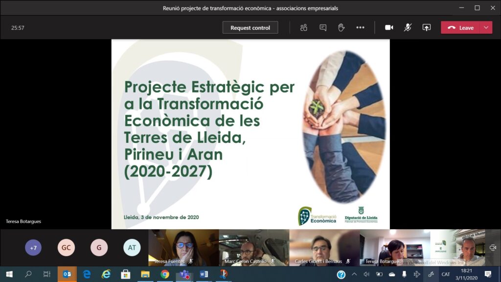 El Patronat de Promoció Econòmica de la Diputació de Lleida ha programat per al dia 11 de novembre una jornada de formació del nou ‘Projecte Estratègic per a la Transformació Econòmica de les Terres de Lleida, Pirineu i Aran 2020-2027’, que està destinat a tècnics locals i comarcals de la demarcació. Fins a la data hi ha 32 persones inscrites.