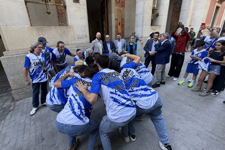 El Pons Lleida fa una parada a la Diputació en la rua de celebració del títol europeu