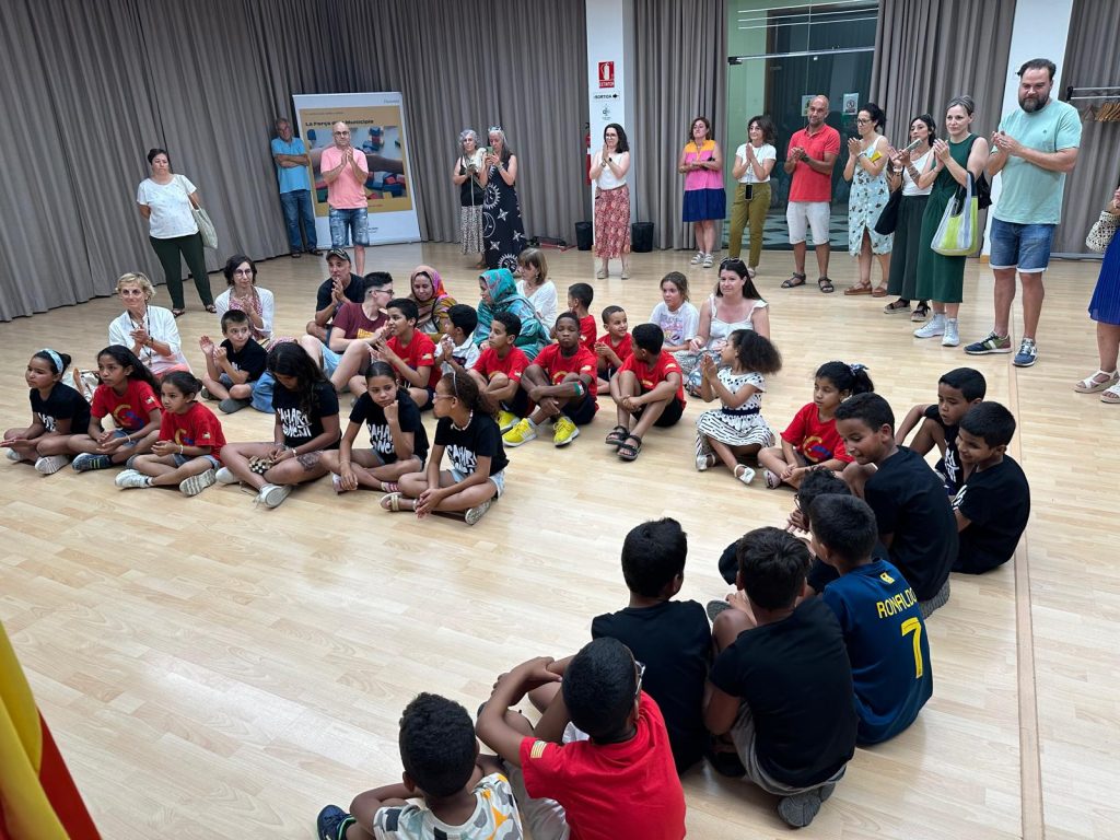 Acompanyats de les famílies acollidores, monitores i els 25 infants acollits en edats entre 9 i 10 anys