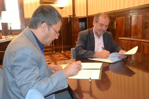El president de la Diputació de Lleida, Joan Reñé, i el president de la Federació ALLEM, Antoni Mateus, han signat aquest dimecres la renovació del conveni de col·laboració mitjançant el qual la corporació destina 135.000 euros a l’entitat.