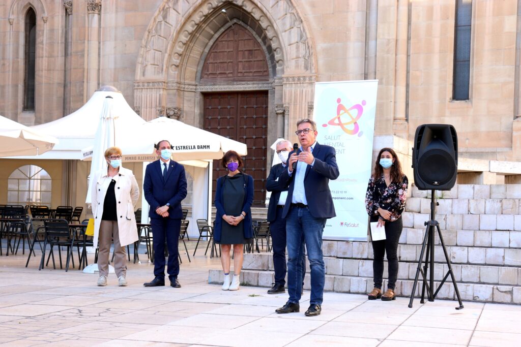 El president de la Diputació de Lleida, Joan Talarn, ha participat aquest divendres en els actes de celebració del Dia Mundial de la Salut Mental, que han tingut lloc a la plaça Sant Joan de Lleida sota l’organització de l’associació Salut Mental Ponent.