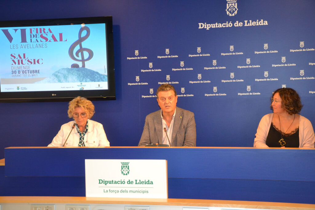 El vicepresident Ferran Accensi; l’alcaldessa de les Avellanes i Santa Linya, Lídia Ber, i la regidora Mercè Badia, han presentat aquest dimecres la sisena edició de la Fira de la Sal, Sal Music, que se celebrarà al municipi de les Avellanes i Santa Linya el diumenge, 30 d’octubre.